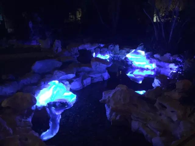劉佳玉作品現(xiàn)場(chǎng),在夜晚的水池里,發(fā)光的石頭